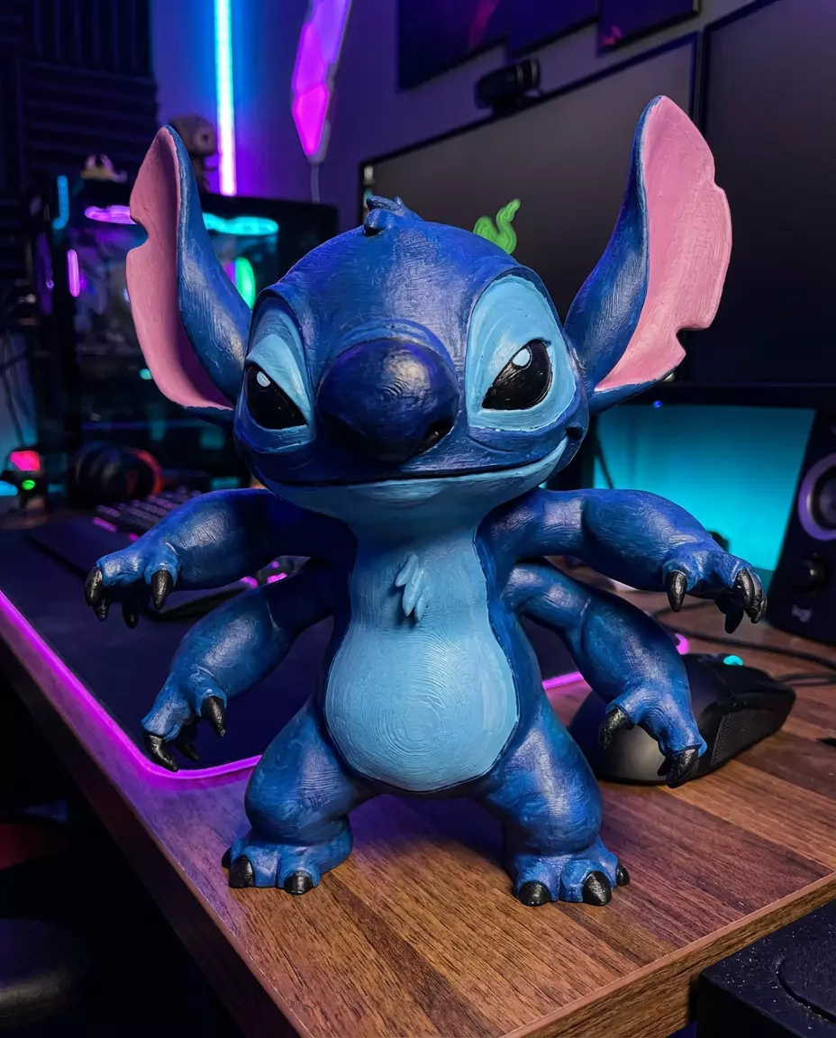 He’s fluffy, blue, and extra mischievous! This Stitch figure showcases his original Experiment 626 form with four arms. Capturing his chaotic energy and lovable personality, it's a centerpiece for any fan of the galactic runaway.