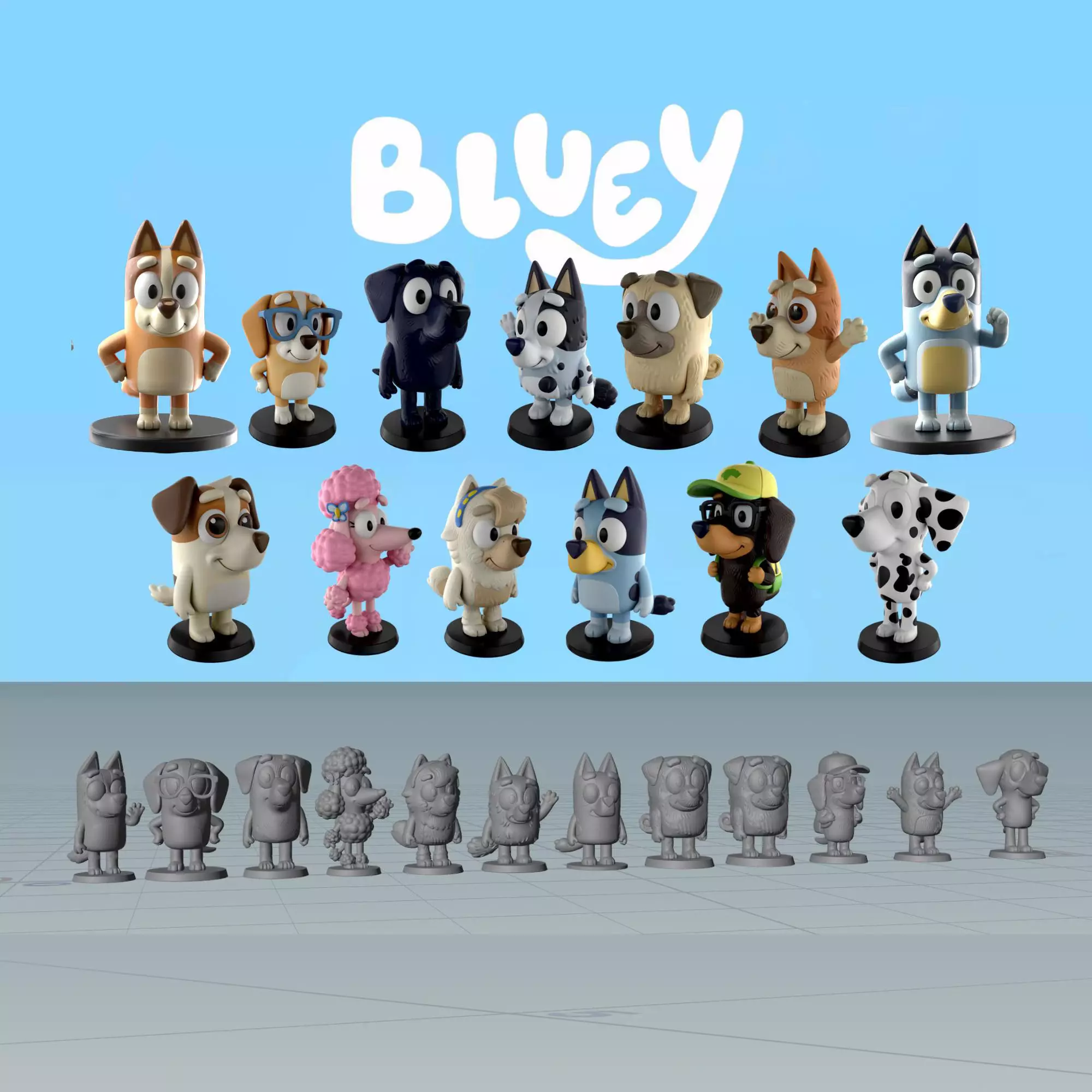 Bluey Character STL Files – 3D Print Figurines Digital Download