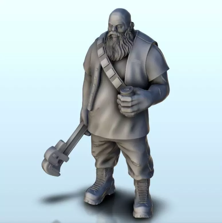 Strong bearded mechanic 6 supported version 3D print model