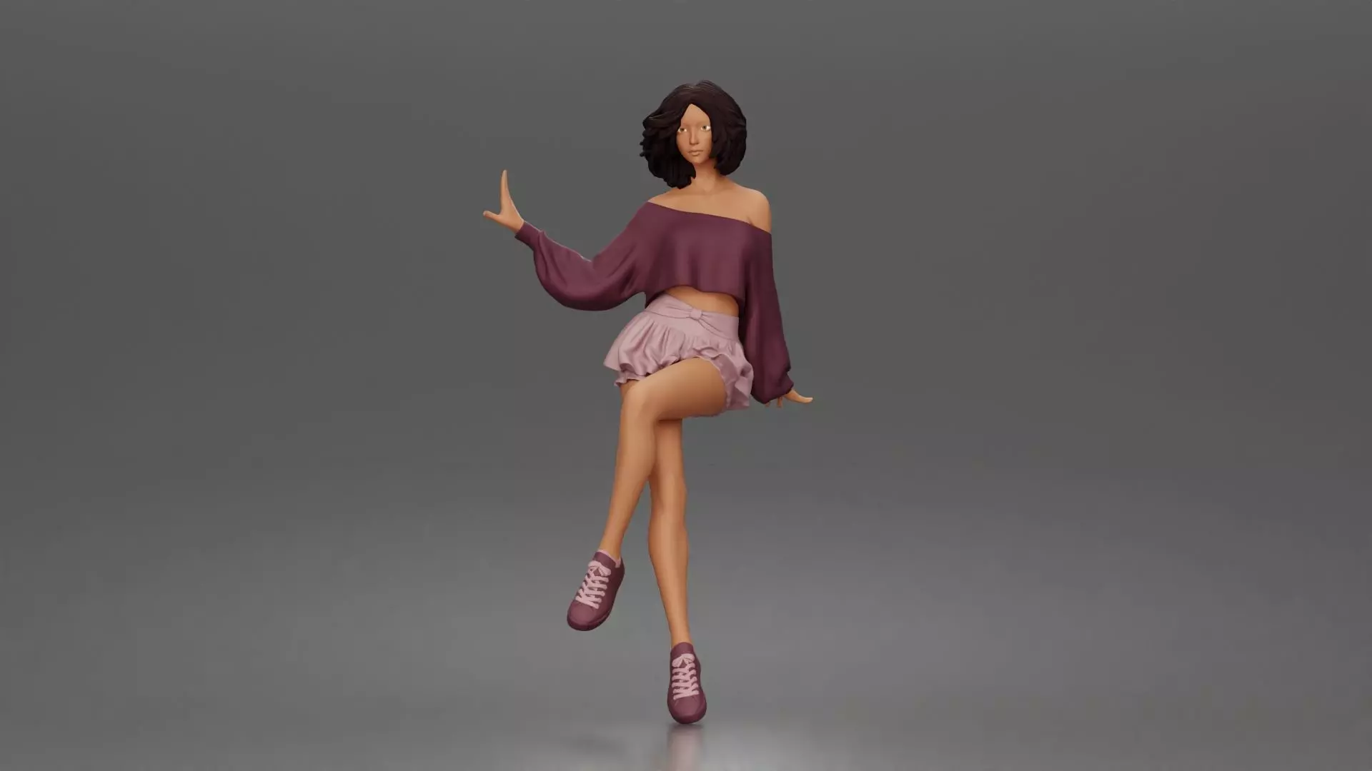 Stylish girl sitting gracefully in relaxed offshoulder top skirt 3D print model