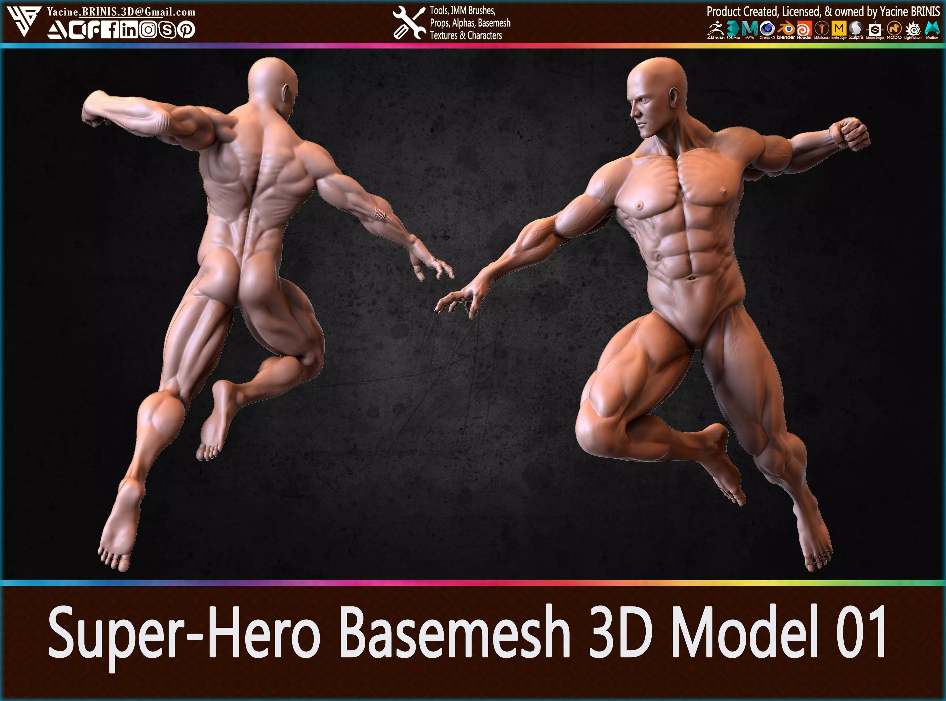 This is a Superhero muscular man basemesh 3D Model, an epitome of strength and heroism, captured in a dynamic pose reminiscent of iconic superheroes. This meticulously detailed model features a muscular physique exuding power and determination, poised for action as he prepares to strike and take flight. Ideal for a wide range of creative projects, including games, films, collectibles, and 3D printing, this basemesh offers unparalleled versatility and realism.