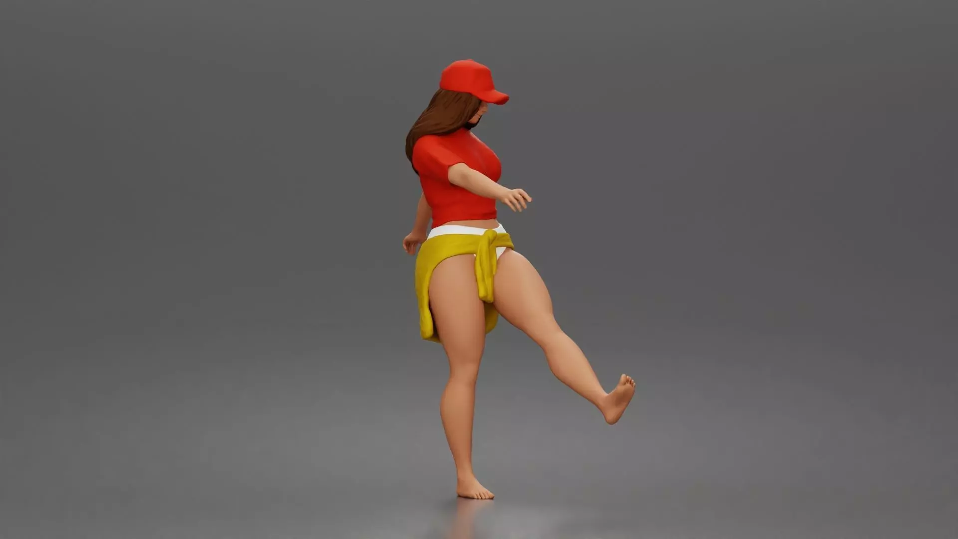 Surfer woman practices balancing in her shirt cap and skirt 3D print model