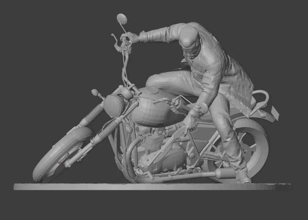 Model made by me of the Terminator on his motorcycle. It has stl and obj files, both of the complete model and its separate parts.