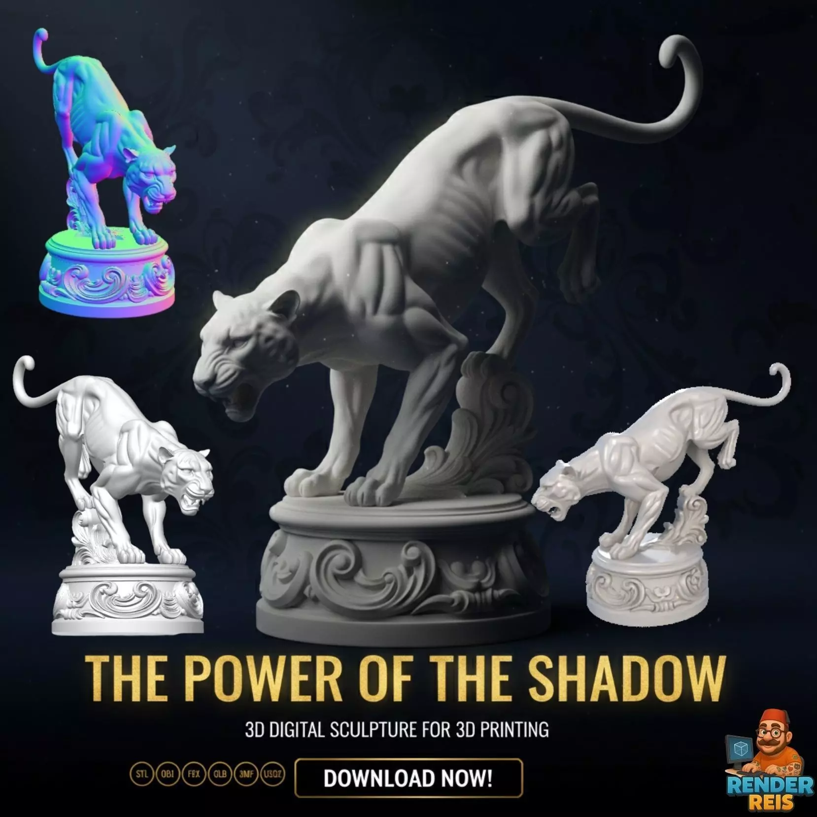 The ornate Baroque/Rococo-inspired base contrasts with the wild, primal nature of the panther, elevating the figure into more than just an animal statue — it becomes a mythological symbol or royal emblem, an artistic monument of elegance and power.