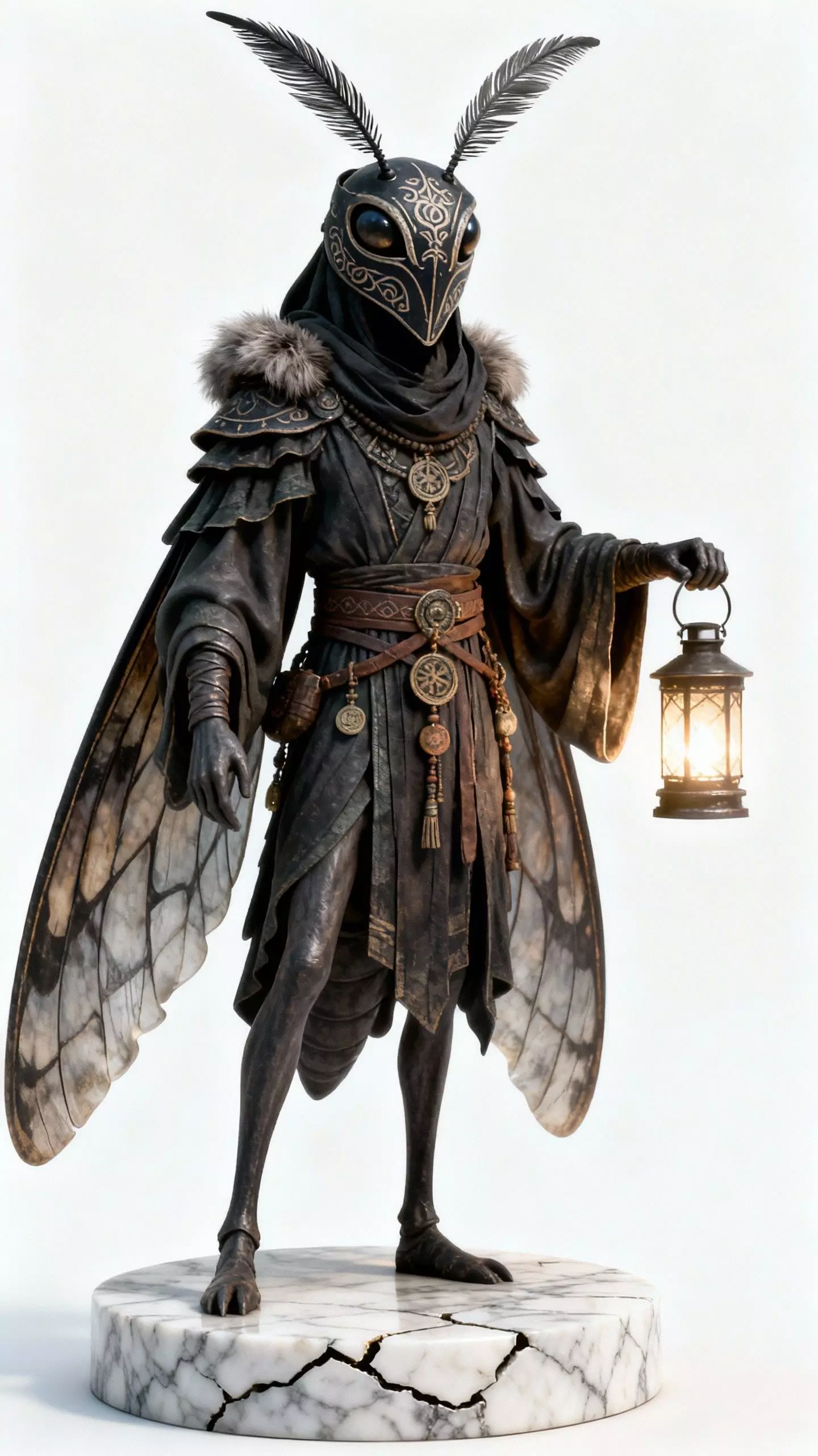 Sculpted for 32 mm scale tabletop or display printing, this miniature captures the contrast of brutality and elegance. The long beaked mask, layered armor, and tattered feather cloak are detailed to the smallest scratch, giving depth for both resin and FDM printing.