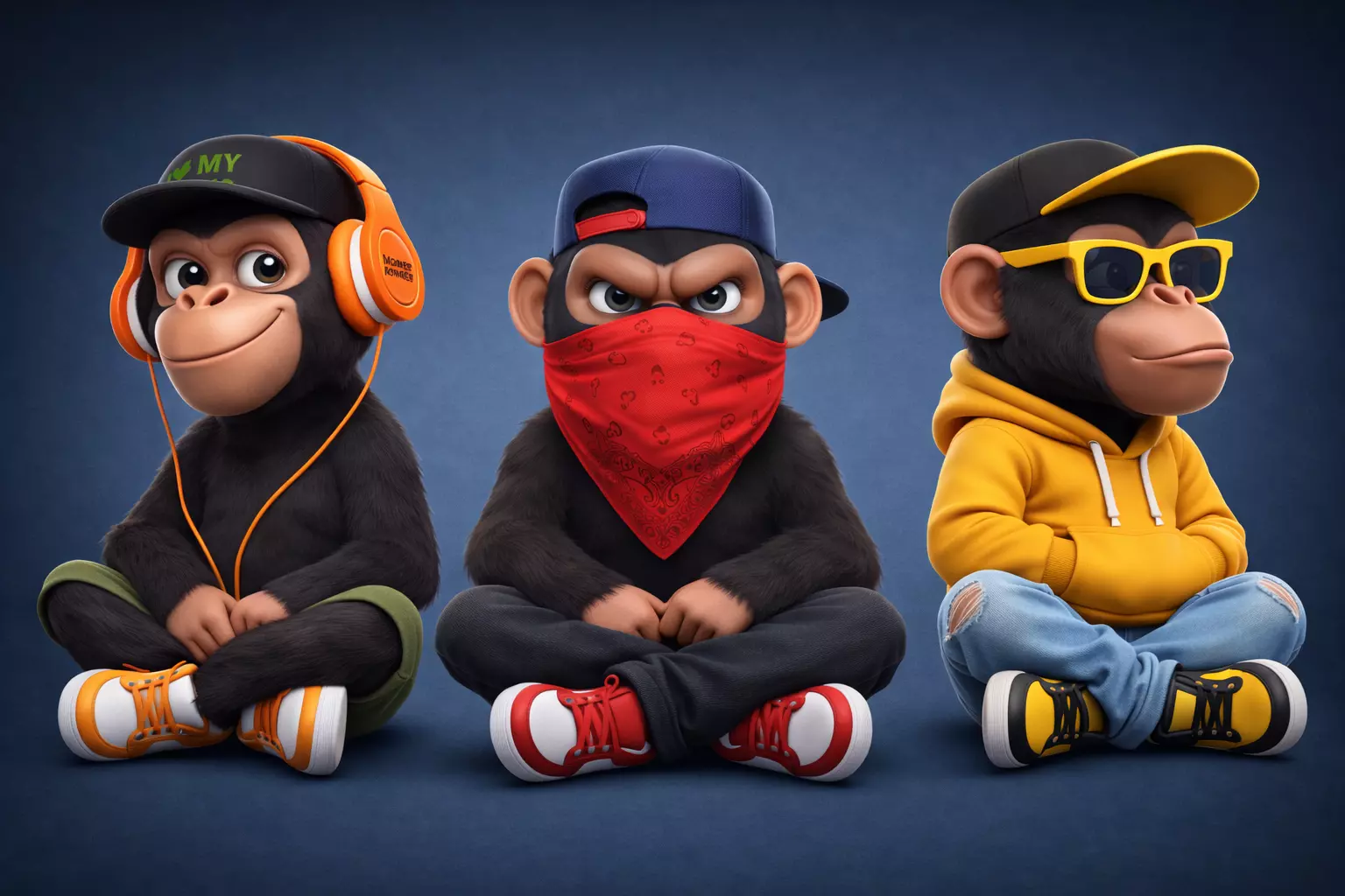 A modern take on the Three Wise Monkeys concept.This stylized monkey figurine pack blends urban street culture with a classic concept: attitude, silence, and style.Each character has a unique pose and outfit, making the set perfect for collectors, desk decor, or statement pieces.