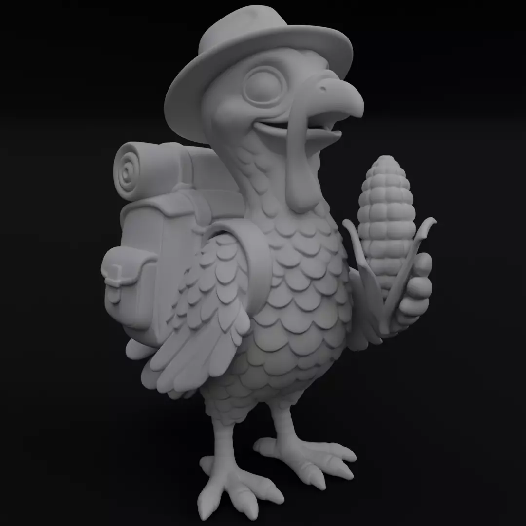 Celebrate the spirit of Thanksgiving and adventure with this delightful Traveler Turkey figurine!This cheerful turkey is ready for a festive journey — carrying a backpack and holding a corn cob as his travel snack. Designed with smooth, stylized details, expressive features, and a touch of humor, this 3D model captures the joyful feeling of autumn, gratitude, and discovery.
