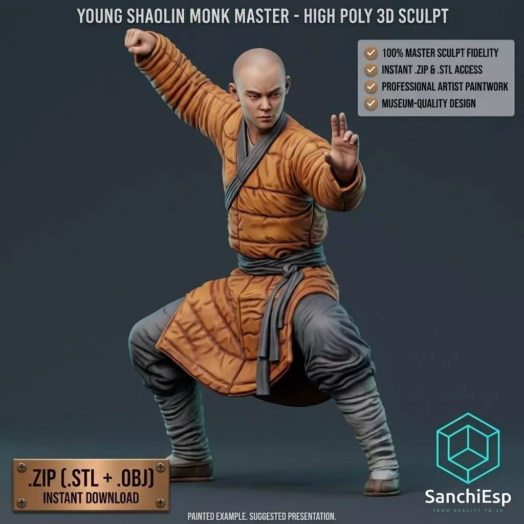 Bring the spirit of martial arts excellence into your creative projects with this masterfully crafted 3D model of a Young Shaolin Monk. This high-quality sculpt captures the perfect balance of discipline, strength, and inner peace, frozen in a dynamic and powerful Kung Fu stance.