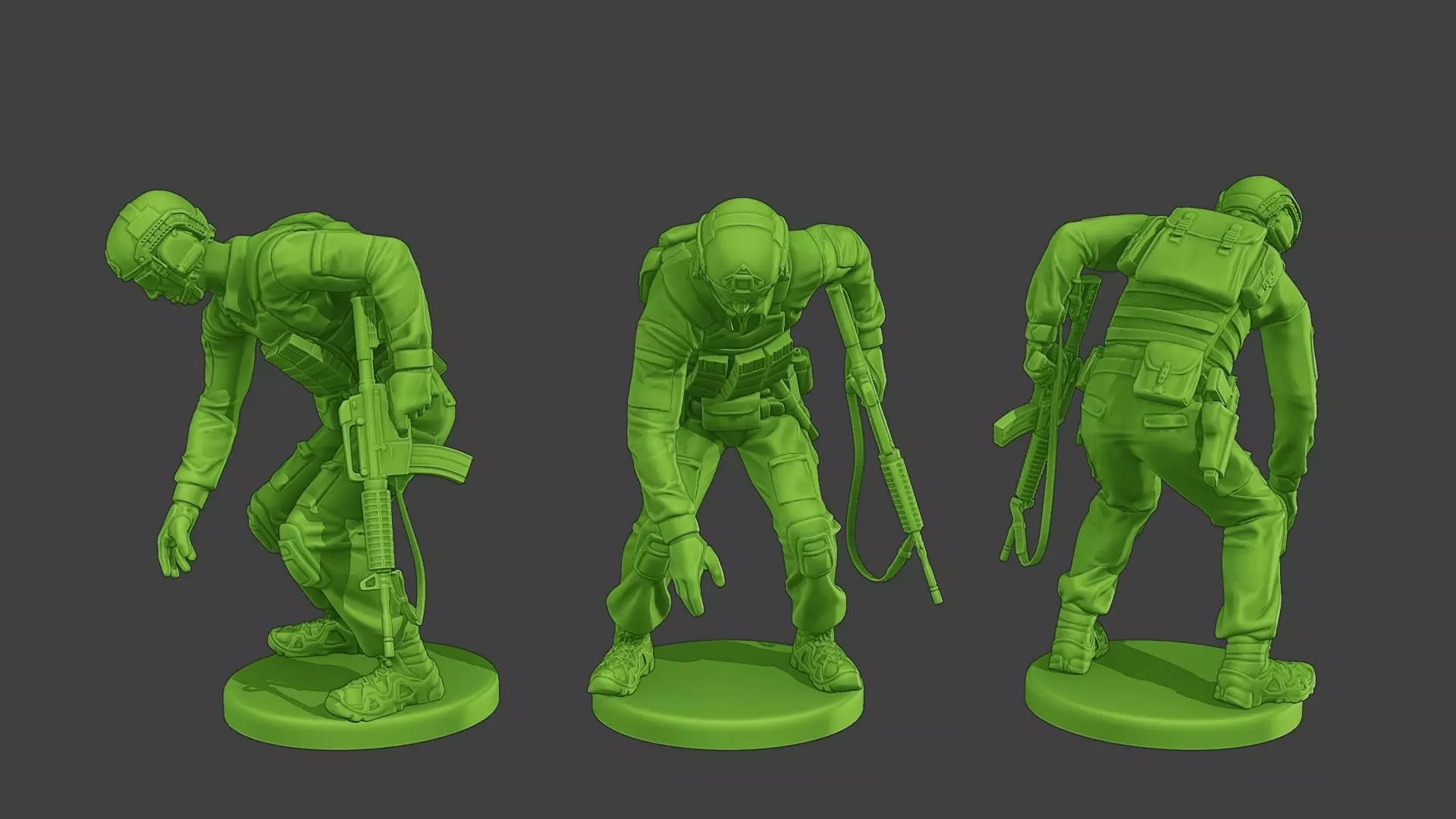 - Soldier with we0pons, equipment and clothes in different actions.