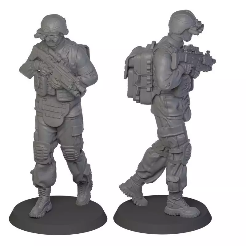SCALE OF MINIATURES 1/35. You can scale the mesh to other sizes. The height of the human figures is about 52 mm (depending on the pose of the model). Supported, ready to print.