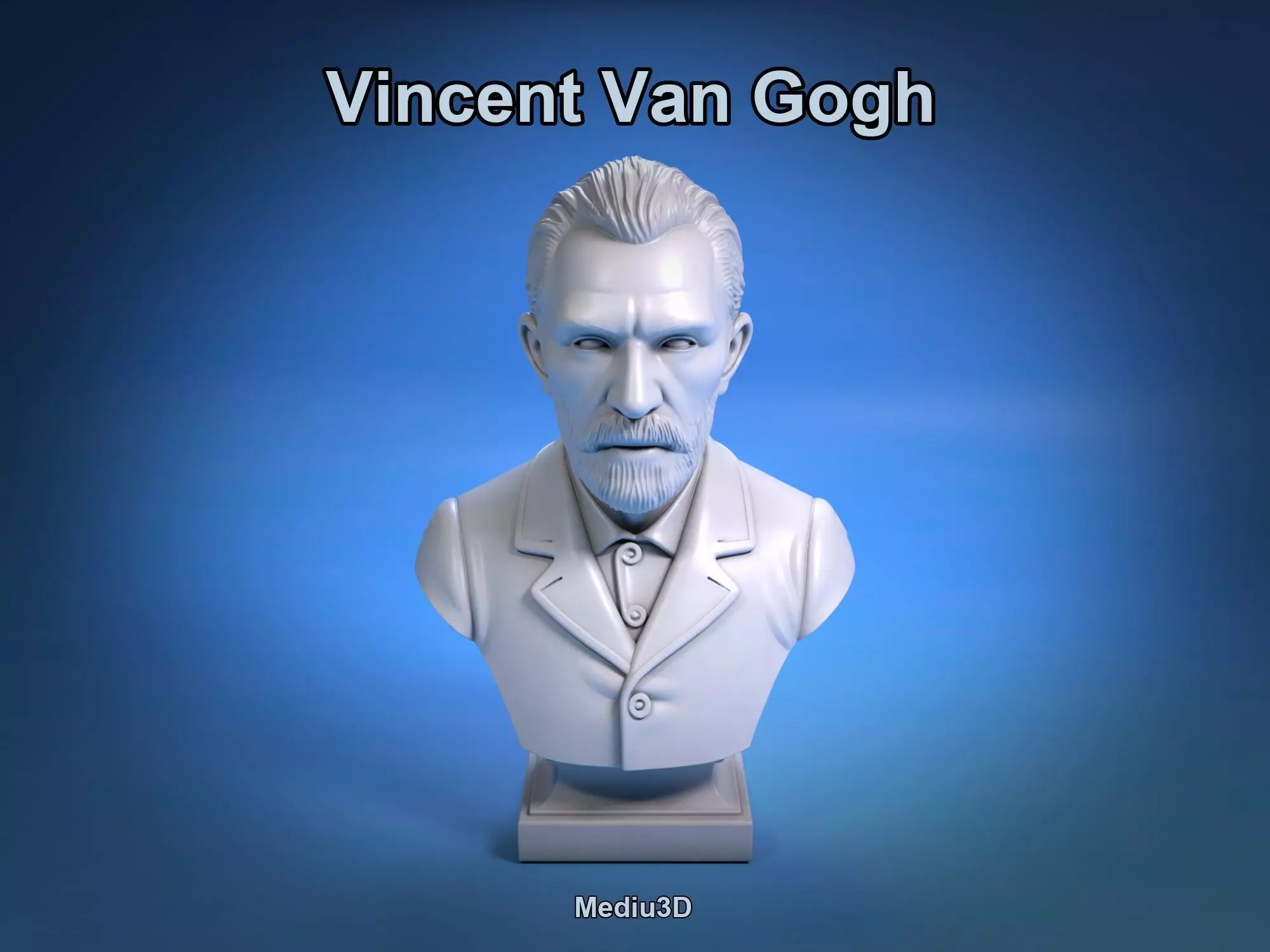 This expressive marble bust captures the intense and tormented spirit of Vincent van Gogh, the post-impressionist master. His angular features, flowing beard, and textured hair are sculpted with remarkable detail, evoking the passion and melancholy that defined his life. The bust is mounted on a rectangular pedestal and designed for art lovers and collectors seeking a tribute to creative genius.