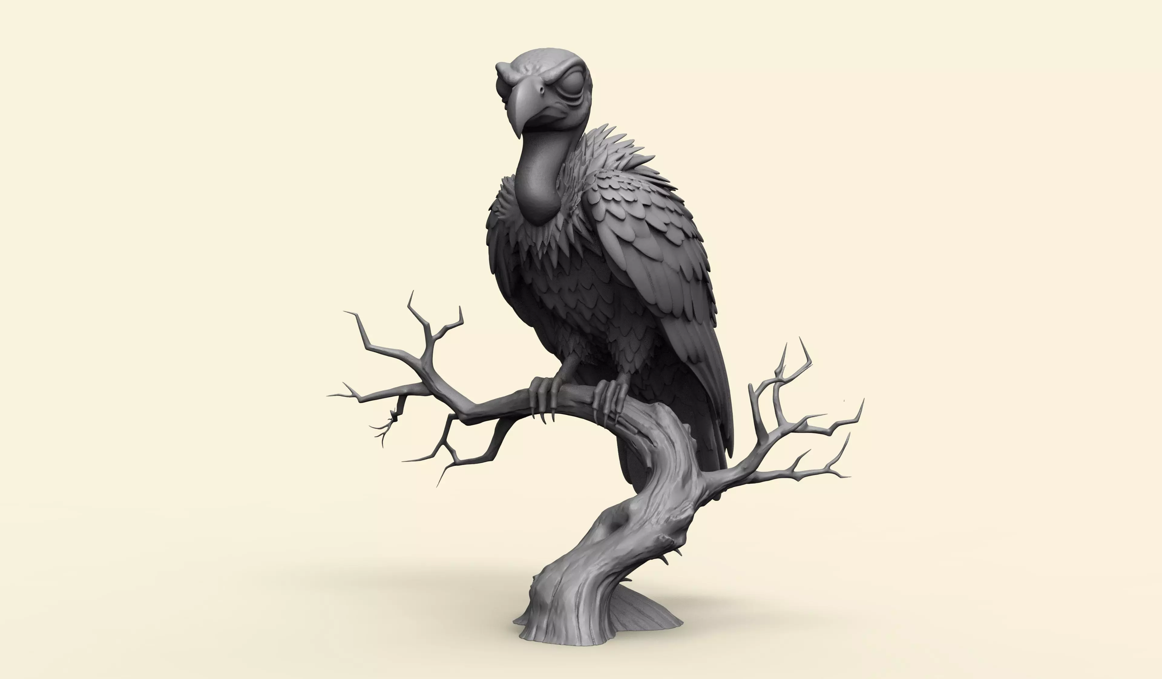 You are purchasing a high-quality Vulture / Griffon Vulture STL model, featuring a single detailed bird figure perched on a dry, weathered tree branch, created for 3D printing.Perfect for tabletop dioramas, wildlife displays, nature scenes, desert or savanna environments, and collectible bird miniatures.