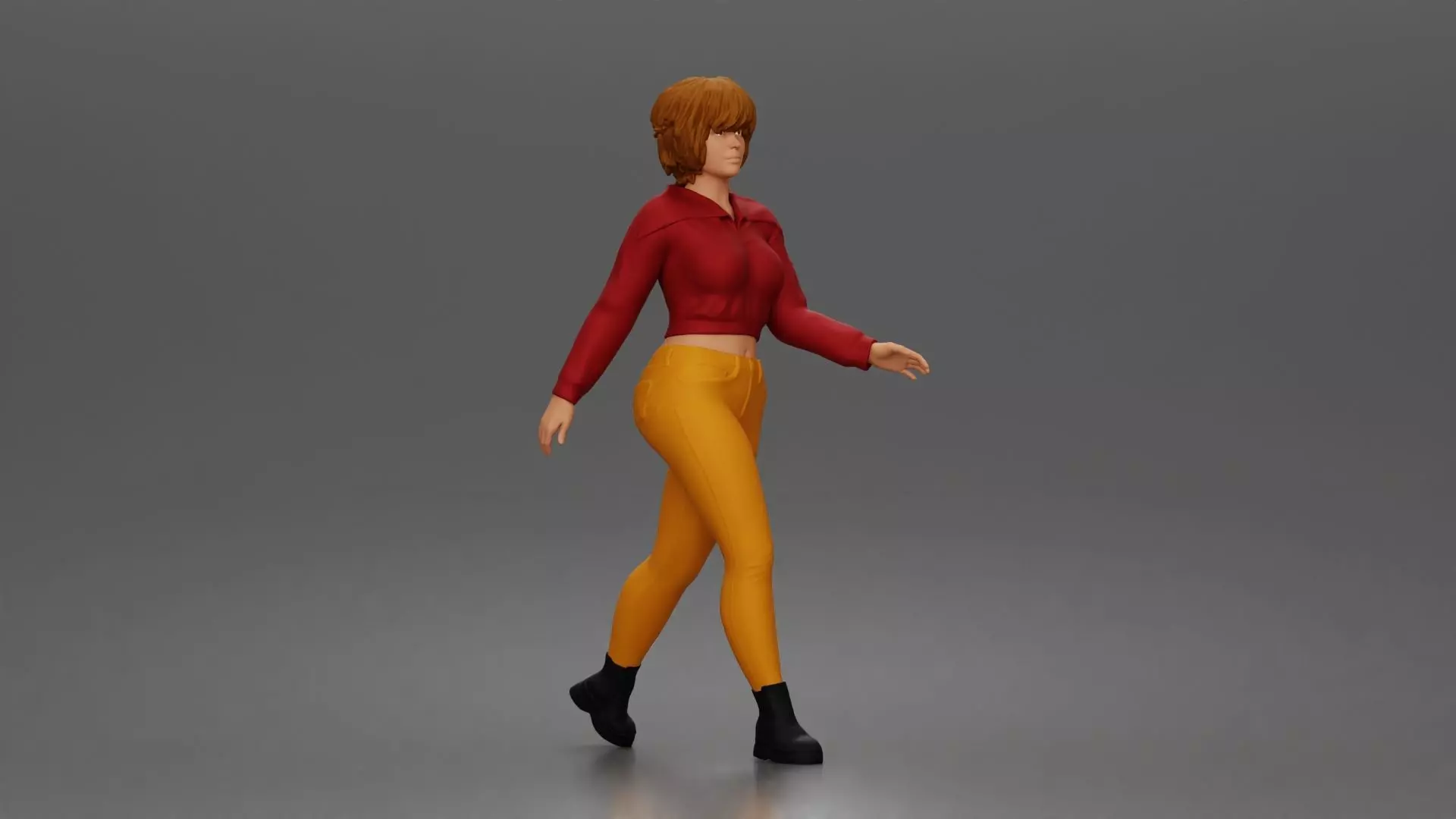 Walking pose highlights outfit design showing energy movement 3D print model