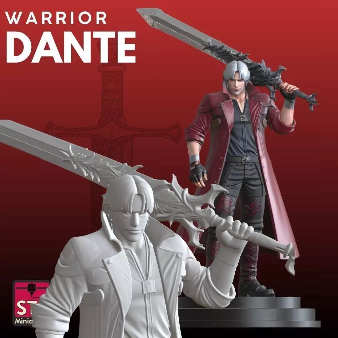 Keywords: warrior stl, dante stl, devil may cry 3d model, fantasy hero stl, sword warrior 3d print, action figure stl, detailed fighter statue, resin model stl, collectible hero 3d print, epic warrior sculpture, dynamic pose stl, fantasy fighter model.