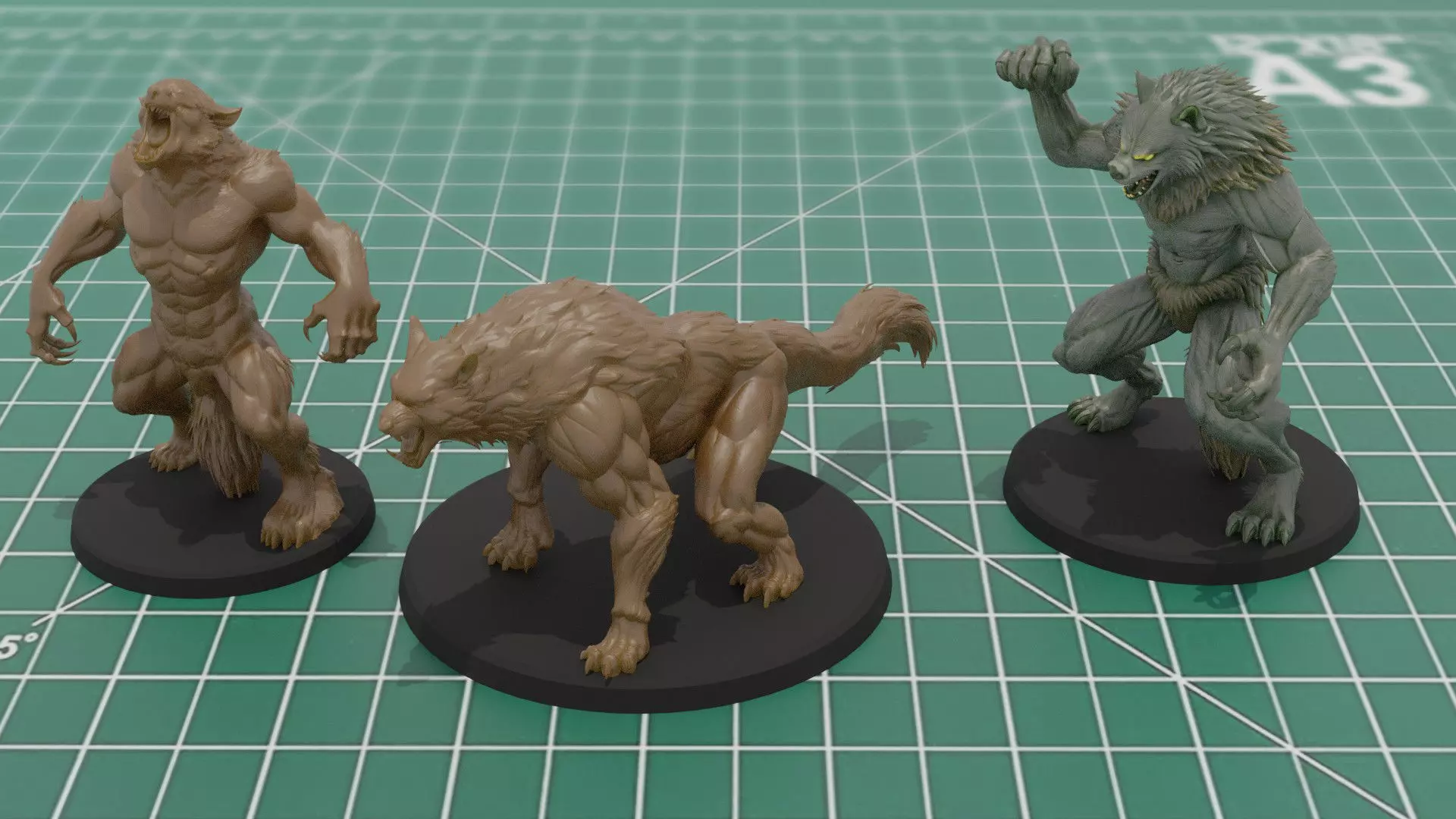 Set of 3 Werewolf TTRPG Miniature 3D Print STL/3MF Model files.