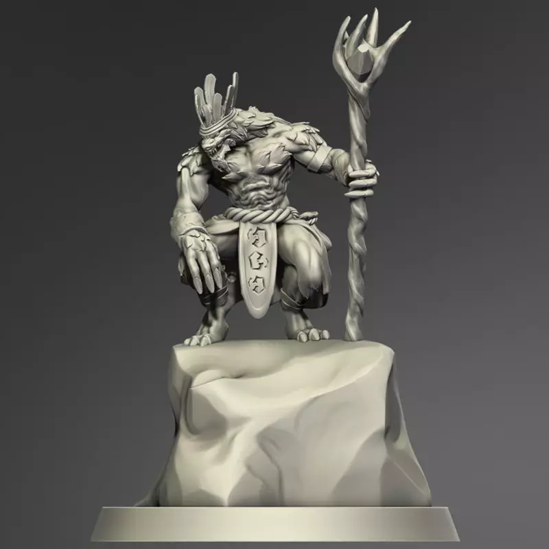 High poly model of a werewolf shaman done in Zbrush, projected to be in 28mm, can be print biggger, the files contain de model with and without base in two versions. Ideal for resin printers, need supports.