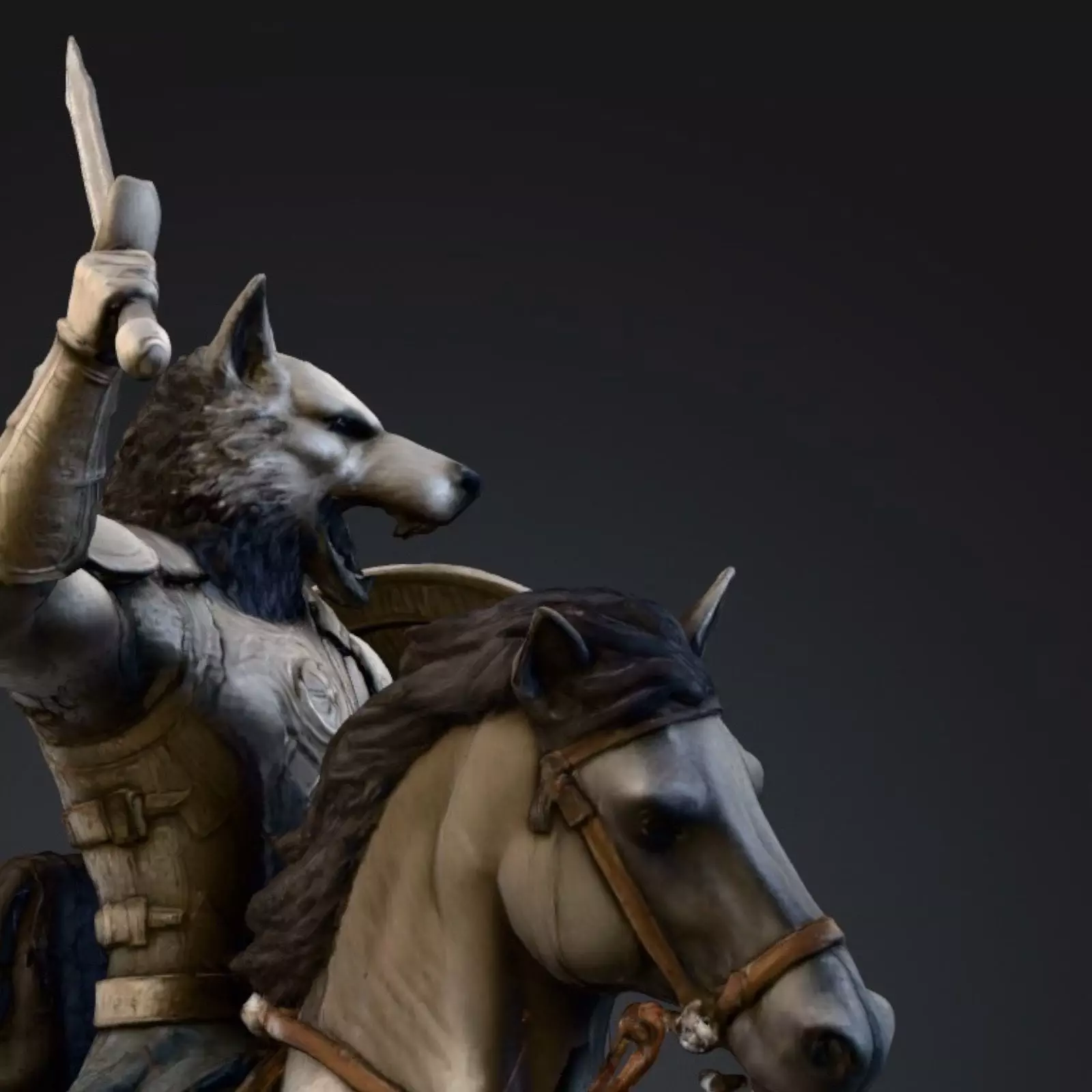 Wolf rider commander with sword and shield