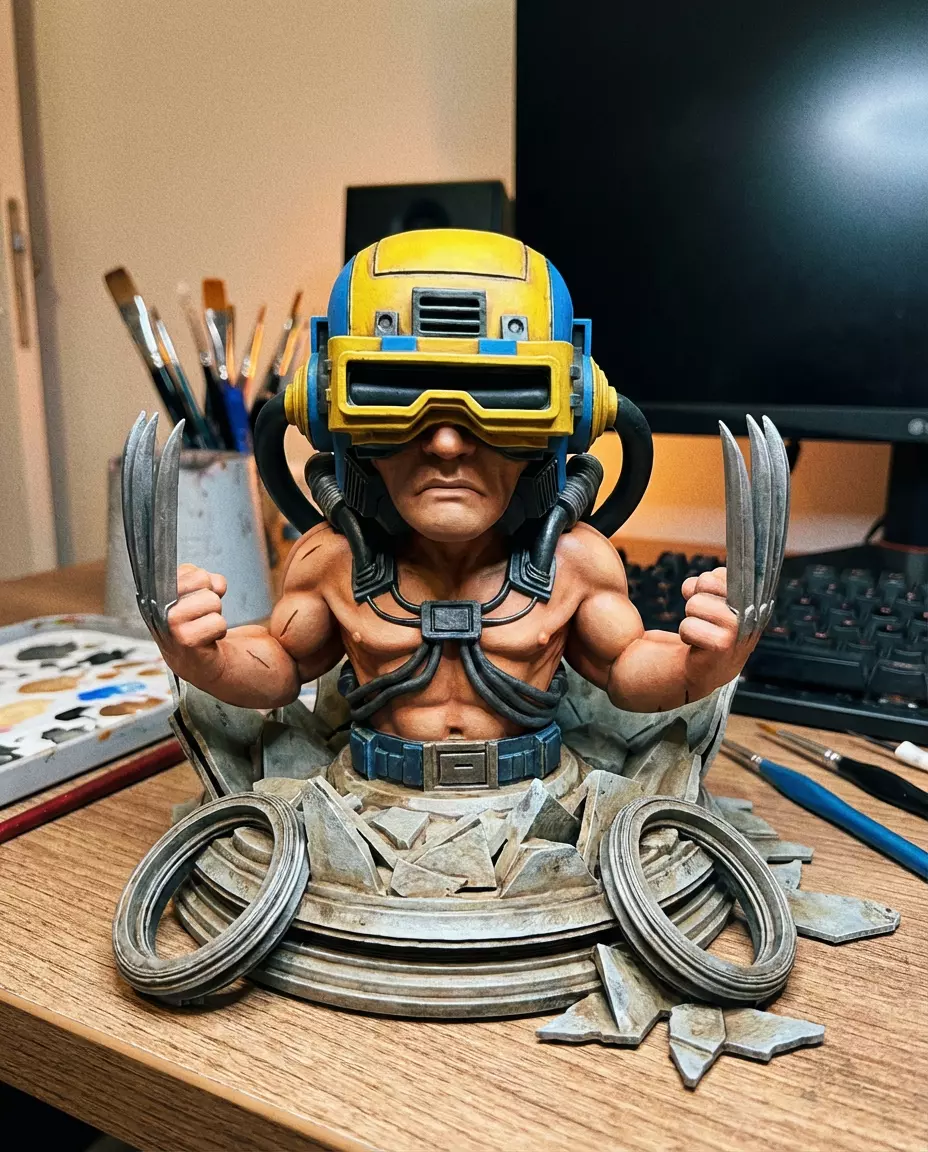 The best there is at what he does. This bust depicts Wolverine during the Weapon X program, breaking free with his adamantium claws. Features incredible anatomical detail, the iconic VR helmet, and connecting cables. A must-print for Marvel fans.