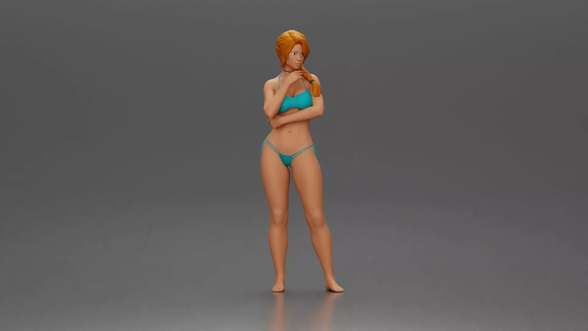 Woman in Bikini Posing Thoughtfully with Hand on Her Chin 3D print model
