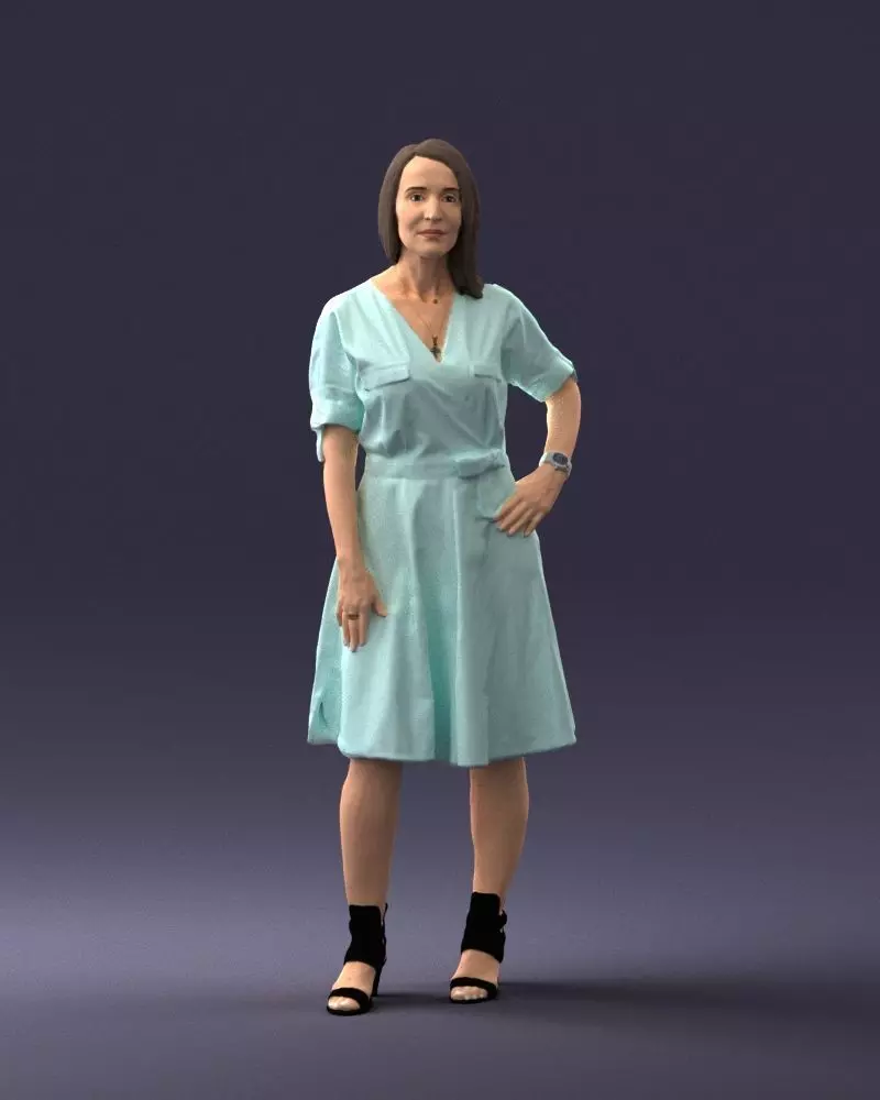 High-quality woman figurine model, created using 3D scanning technology for realistic proportions, natural stance, and true-to-life clothing volume. The character is wearing a modern dress with subtle accessories, making this model a great choice for lifelike miniature scenes and human-scale reference figures.