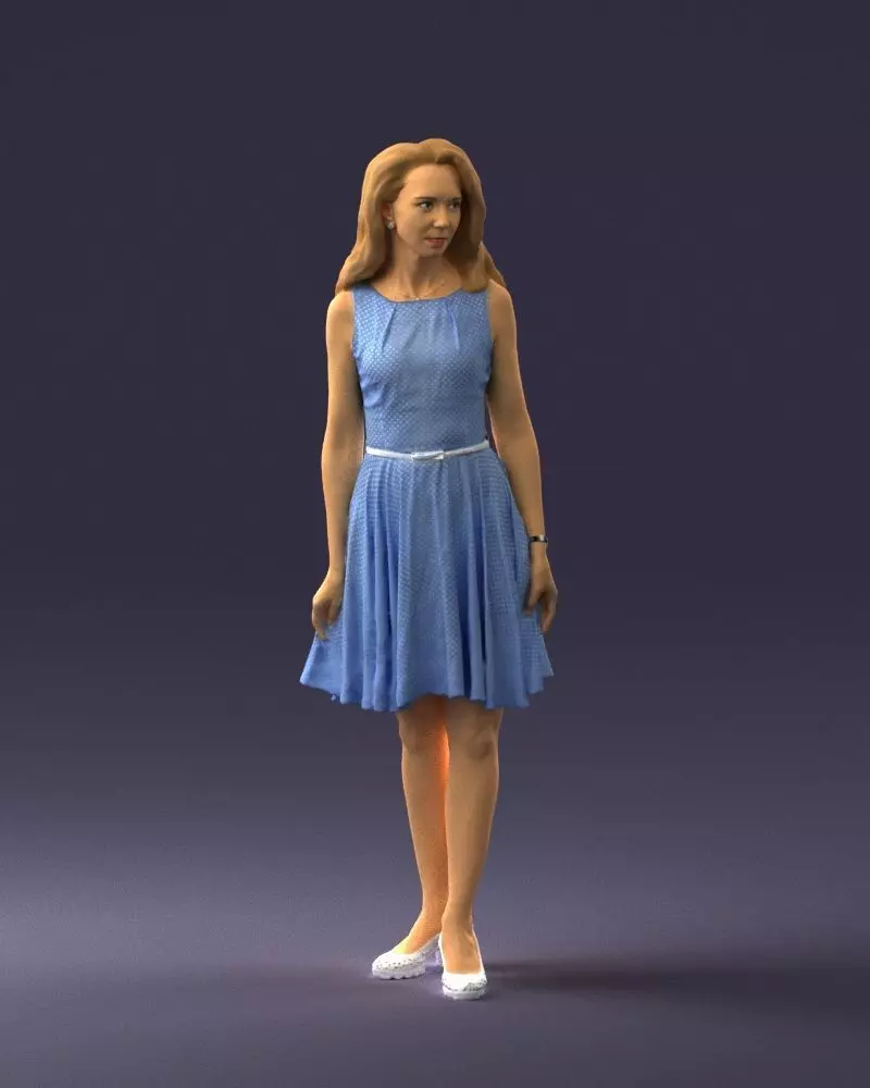 High-quality woman figurine model, created using 3D scanning technology for realistic proportions and a natural walking pose. The dress outfit and elegant styling make this model perfect for miniature city scenes, architectural scale models, and collectible character sets.