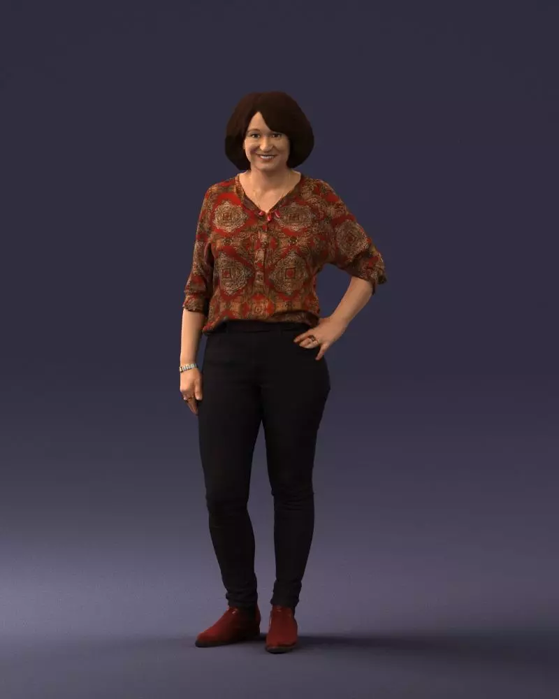 3D Printable Model: Middle-Aged Woman in Casual Outfit – Realistic Figurine for Personalized ProjectsDescription:Accurate and lifelike 3D printable model of a casually dressed middle-aged woman, captured through 3D scanning technology for superior detail and natural anatomy. The model presents a friendly standing pose, perfect for custom dioramas, urban miniatures, personal sculpture gifts or display figures.