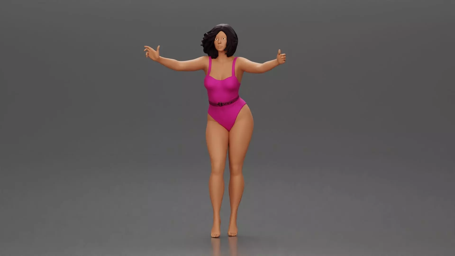 Woman with short black hair wearing pink swimsuit raising arms 3D print model