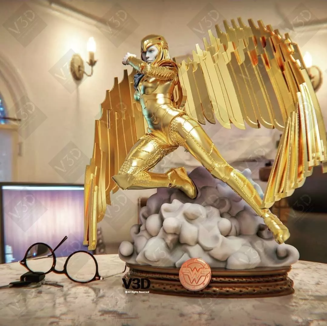 Behold the stunning 3D statue of Wonder Woman, a breathtaking embodiment of power and grace. Inspired by the iconic golden armor from the movie Wonder Woman 1984, this meticulously crafted masterpiece captures every intricate detail. The flowing contours of her armor gleam with a radiant golden hue, reflecting strength and resilience. The dynamic pose accentuates her unwavering determination, evoking a sense of heroism frozen in time. With every crease and texture meticulously recreated, this 3D model is meticulously prepared for the magic of 3D printing, ensuring enthusiasts can bring this formidable representation of Wonder Woman into the tangible realm. A tribute to both cinematic artistry and technological innovation, it stands as a testament to the enduring symbol of female empowerment.