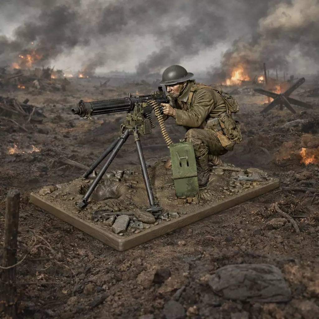Bring World War I history to your tabletop or diorama with this highly detailed British Machine Gunner STL model.