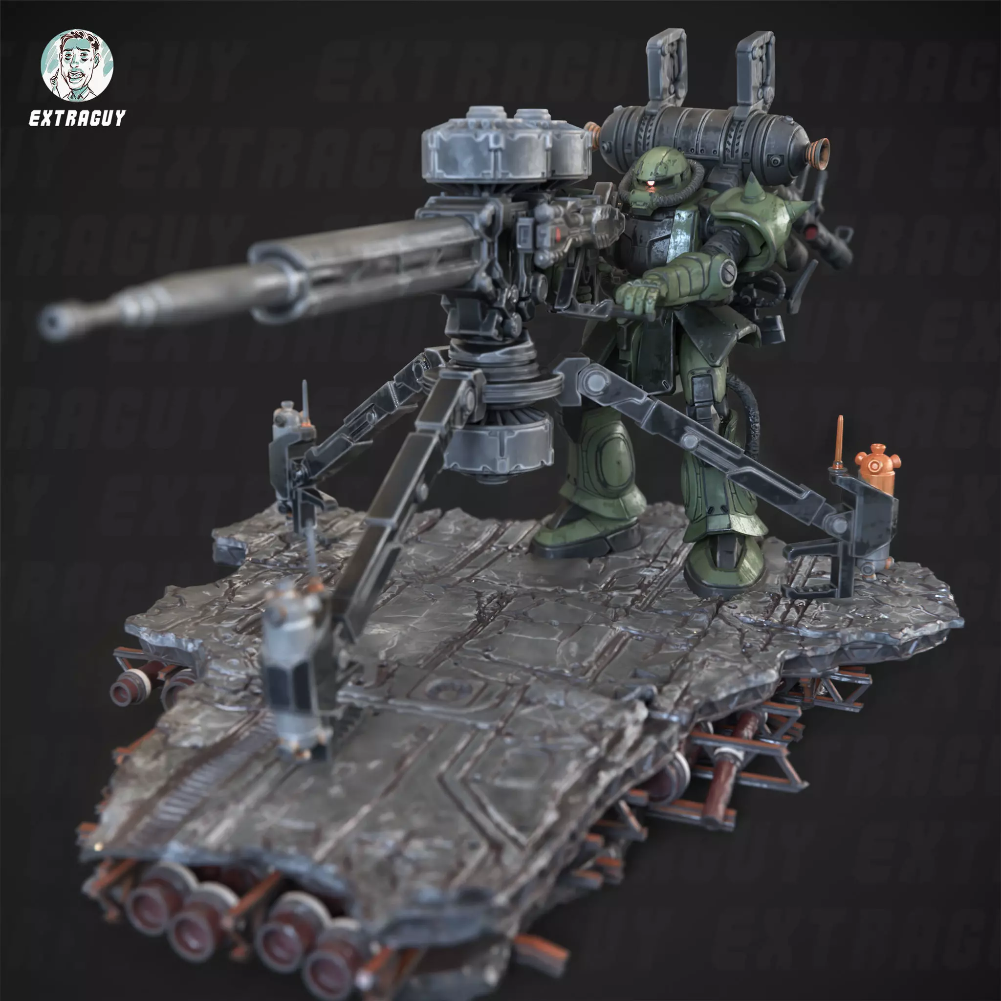 Ola, I present you Zaku II Static Pose Set 140mmMech is about 140mm in heightApproximate dimension of the set are as follows (including base)Height: 202mm Width: 260mm Depth: 436mmAsset is cut in parts for easy assemblycomes with custom baseweapons set( bazooka, rifle, heathawk)Sniper platformAll files are in STL formatFiles includesSupported and Unsupported STLsLychee source fileAssembly guideRendered imagesReference model(not suited for print, just for assembly reference)Files are for 3D Print only, not suited for animationPlease subscribe to my Youtube to see whats cookingyoutube.com/@ExtraGuy_Miniaturesor join my discord for updatesdiscord.com/invite/HdTpjXJHvS