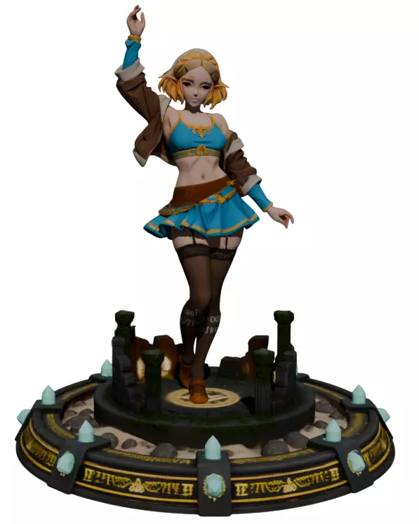 Discover a unique and sophisticated vision of Princess Zelda with this stunning 3D figure that combines royal elegance with a touch of refined sensibility. This interpretation shows the ruler of Hyrule with an attire that enhances her natural grace, while maintaining the dignity and nobility that characterize the iconic princess.