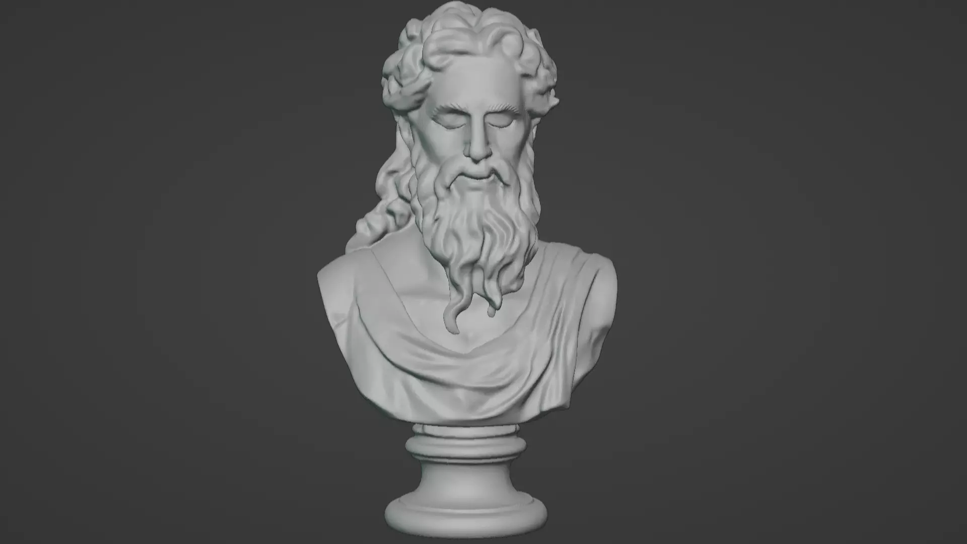 This high-quality 3D model represents a classical bust of Zeus, the king of the gods in ancient Greek mythology. Ideal for 3D printing, digital artwork, educational purposes, and historical visualization, the model features detailed facial expressions, textured hair and beard, and a noble, mythological aesthetic.