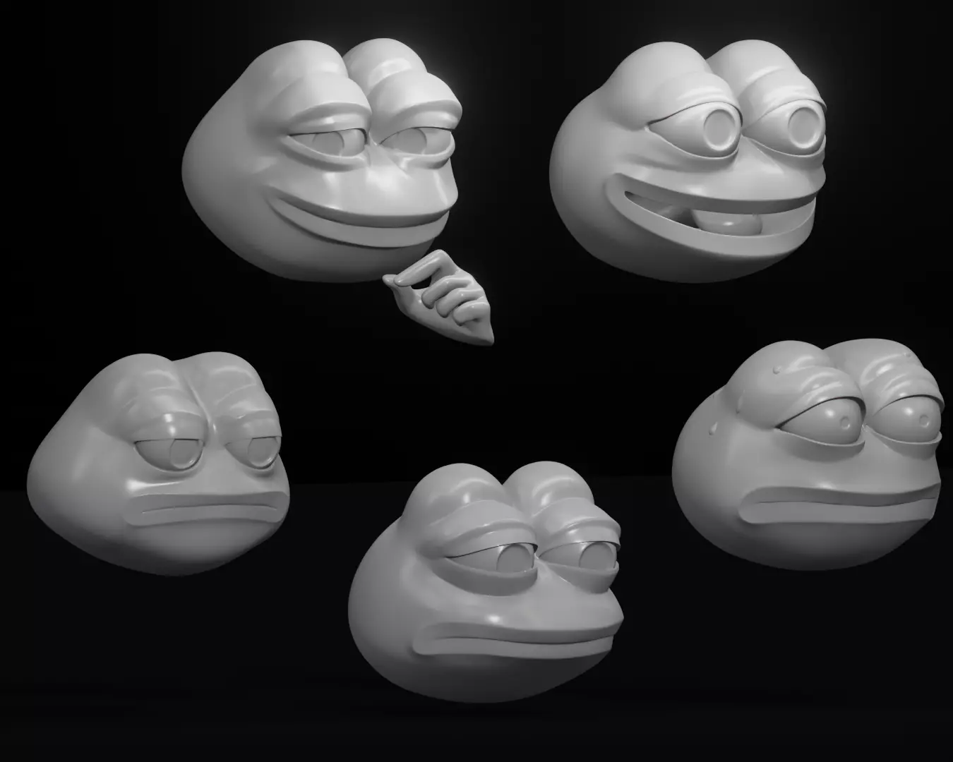 Pepe heads optimised for 3D printing. Without any cavities (excluding Feelsgoodman pepe's mouth).