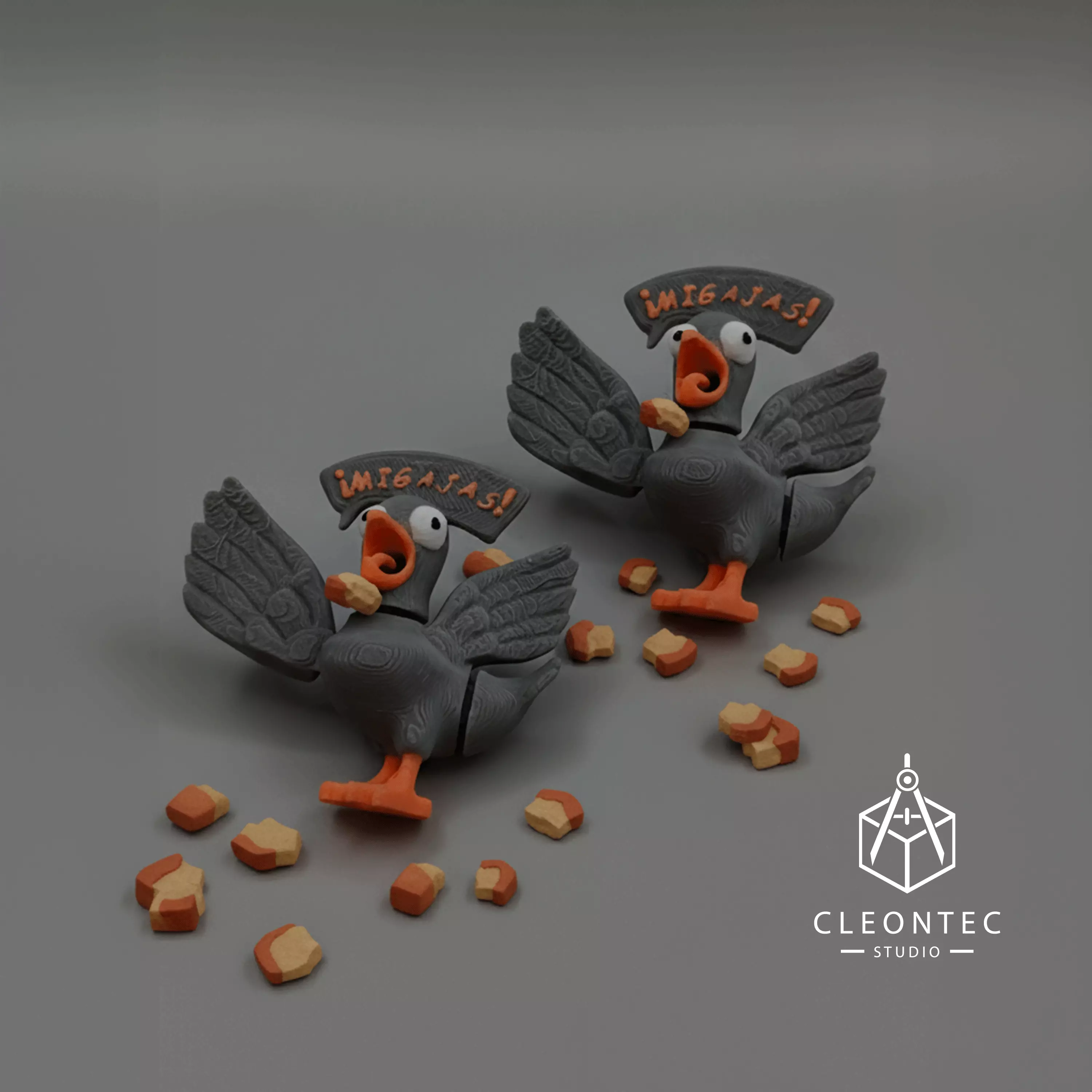 El modelo está diseñado en varias piezas (cuerpo, alas, patas, pico, letrero, etc.) para una impresión multicolor muy fácil y sin necesidad de MMU o AMS.