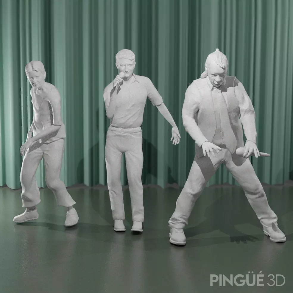 All three represent, in statue form, the unforgettable moment when Fabián Show plays an invisible piano, during the instrumental part of the famous work Conga, performed with Eduardo Pichirica and his dancer Rosalía.