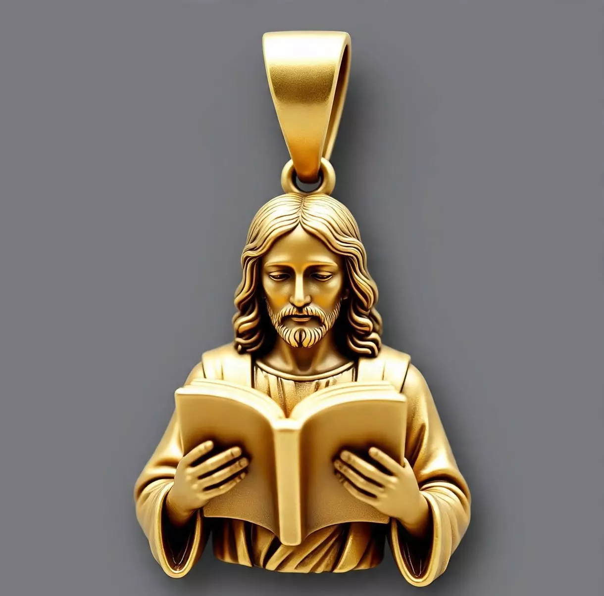 This elegant Jesus Pendant captures a serene and powerful depiction of Jesus holding an open book, symbolizing divine wisdom and eternal truth. Designed with intricate details — from the flowing hair to the graceful robes — this piece radiates peace, faith, and devotion. Perfect for jewelry designers, 3D printing enthusiasts, or collectors of spiritual art, this pendant embodies both sacred beauty and craftsmanship.