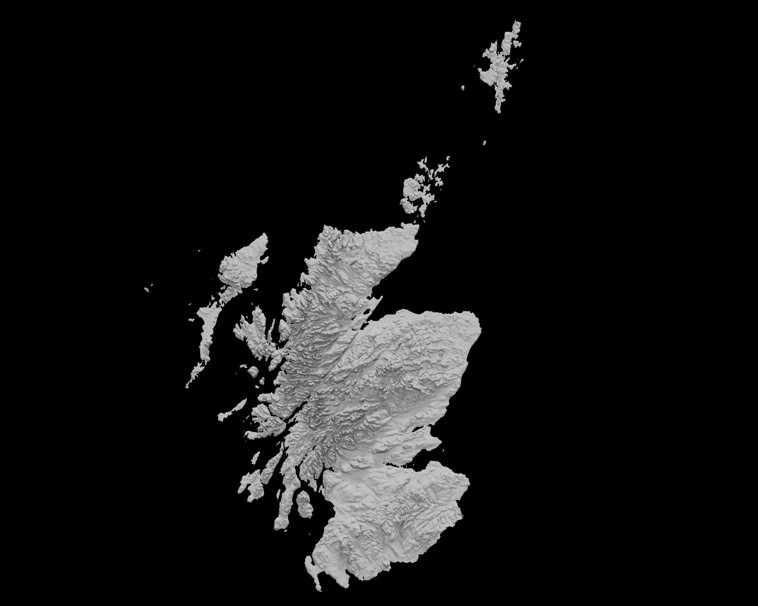 Crafted with meticulous attention to detail, this 3D model features plains, mountain ranges, and rivers, capturing the geography of Scotland in stunning 3D detail.