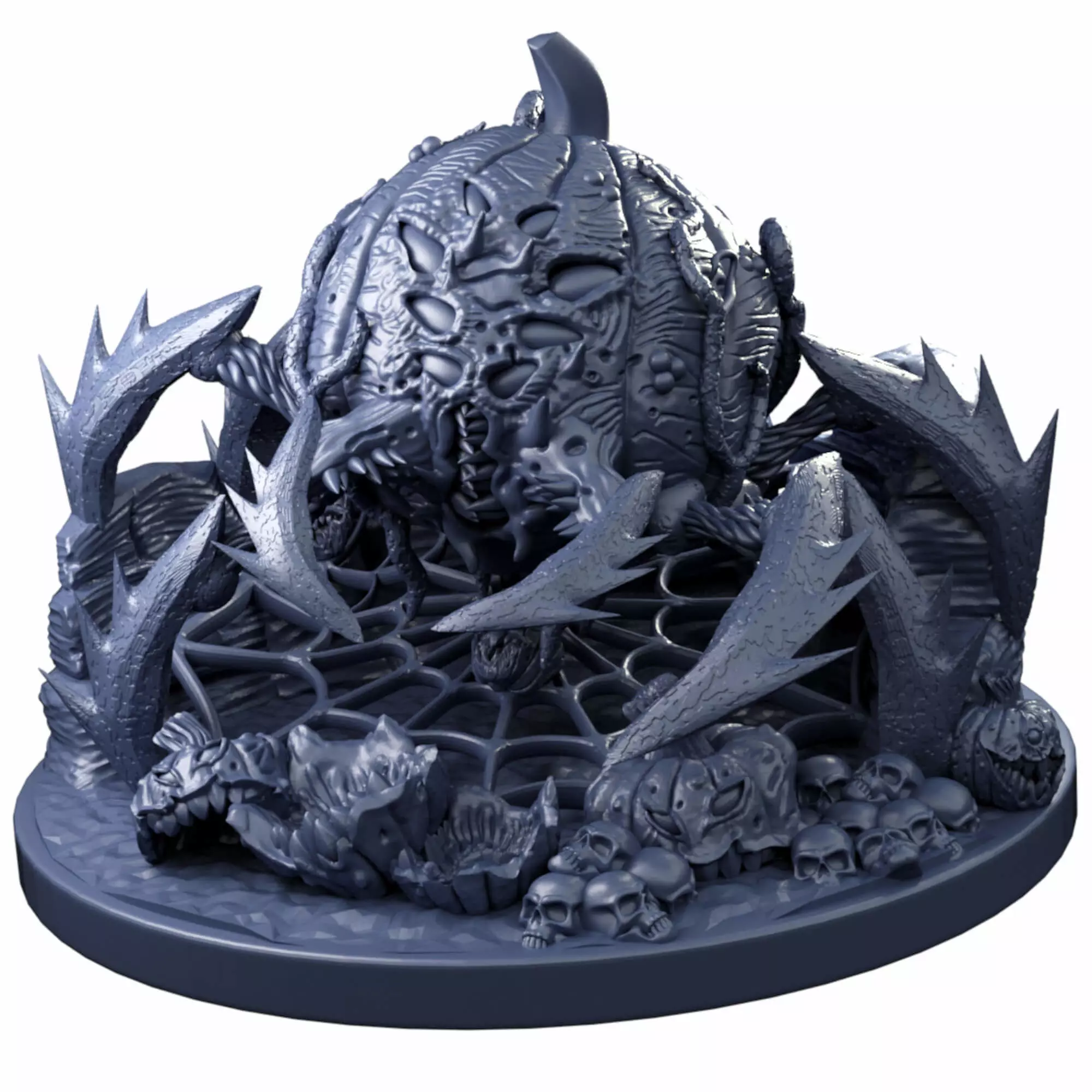 Fantasy awakened/undead pumpkin spiders with optional 50mm web diorama base. Also comes with lychee project files for resin pre-supported prints.