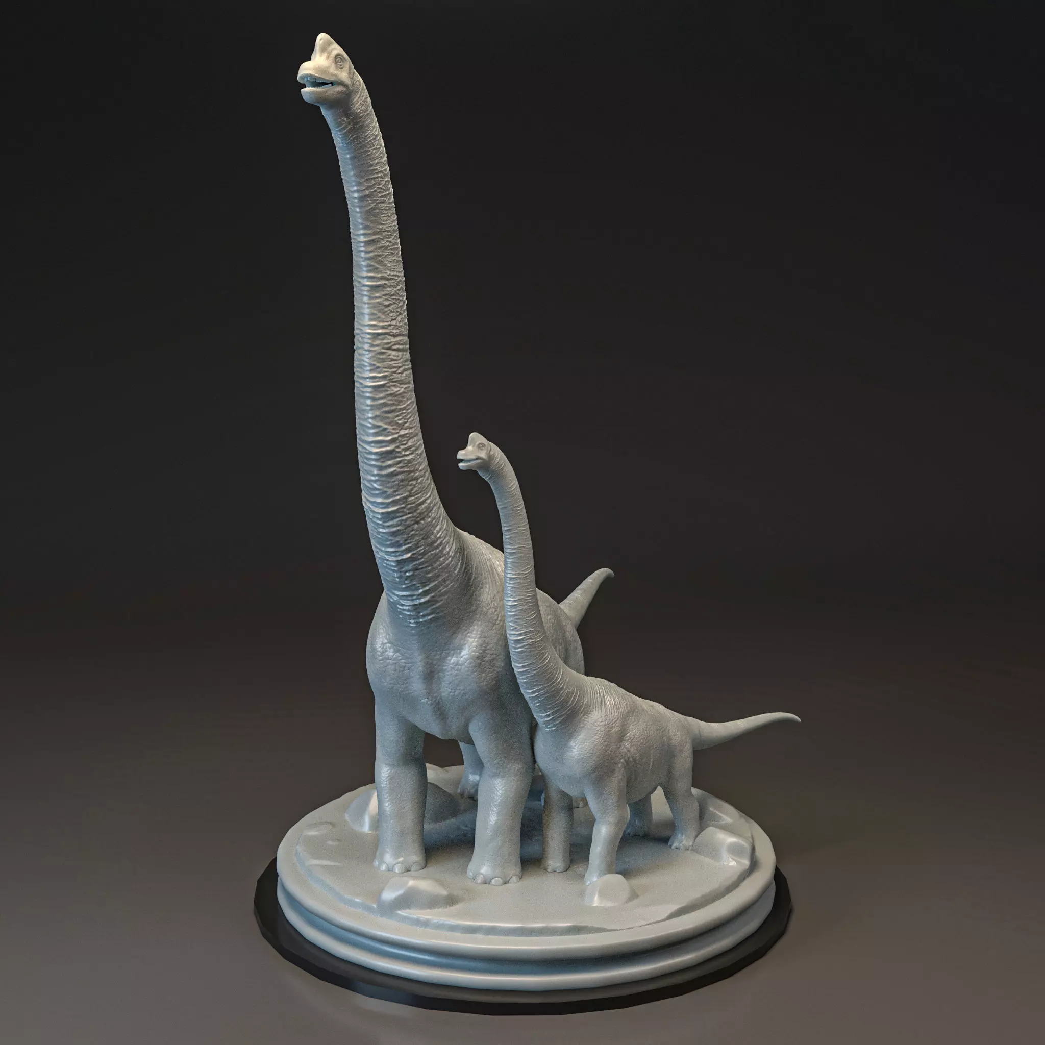 The Brachiosaurus altithorax, one of the most majestic dinosaurs from the Late Jurassic period, is renowned for its towering height and long neck. This herbivorous giant roamed the ancient landscapes approximately 154 to 153 million years ago, reaching heights of up to 40 feet and lengths of 85 feet. The 3D model I have created for this species includes both the adult Brachiosaurus and its baby, capturing the tender relationship between parent and offspring. Meticulously detailed, the models feature unique skin textures and intricate anatomical features that characterize the Brachiosaurus. Designed for 3D printing, they are available in both STL and OBJ formats, ensuring compatibility with various printing systems. The lifelike details and accurate structures make these models exceptional representations of this legendary dinosaur, perfect for educational purposes, display, or personal collections.