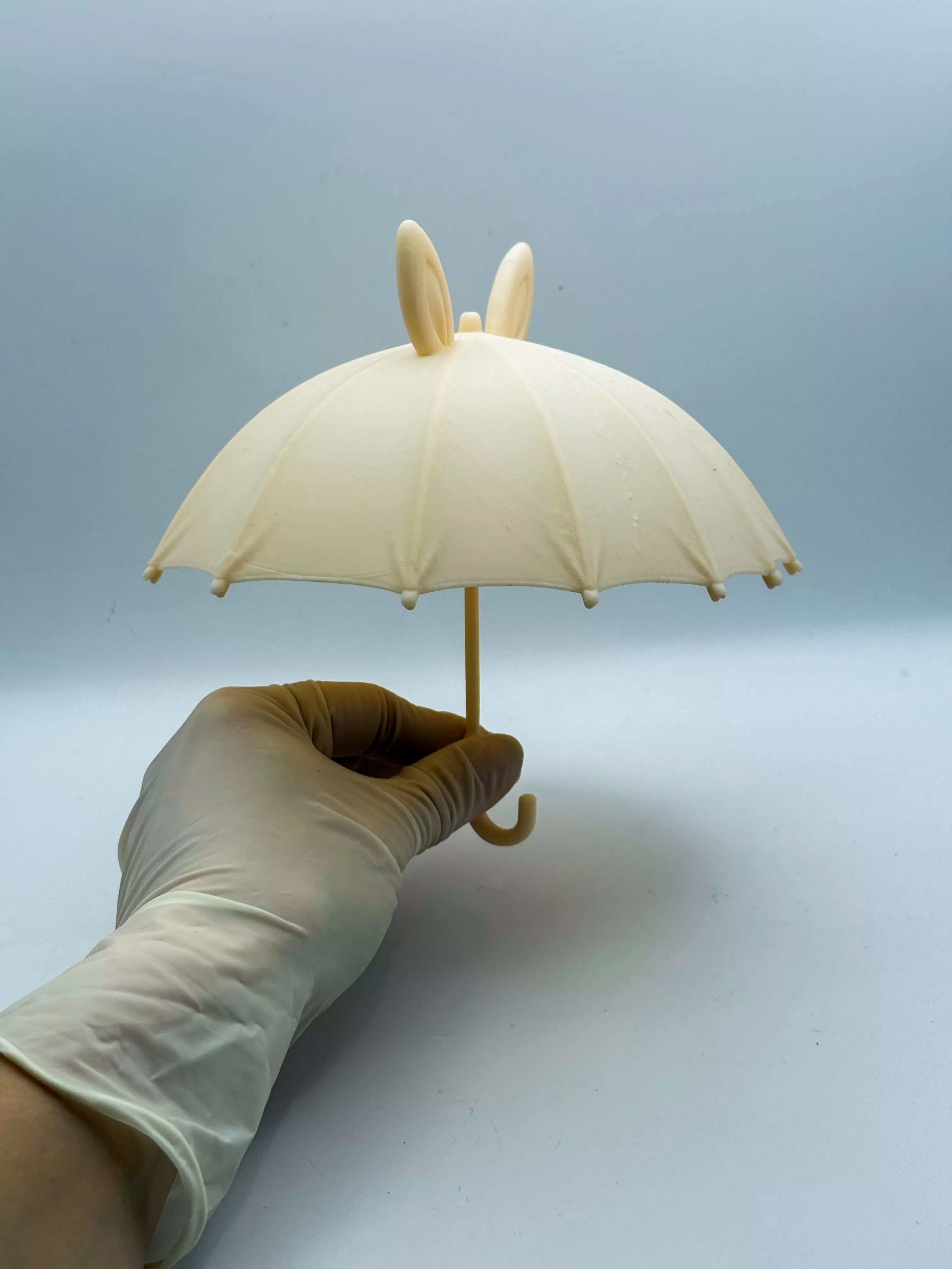 **Playful bunny-themed umbrella **designed exclusively for dolls, action figures, miniatures, and diorama displays.The rounded canopy with soft folds and cute bunny ears creates a whimsical, fairytale look — perfect for pastel scenes, gothic toys, fantasy dolls, or stylized photo setups.