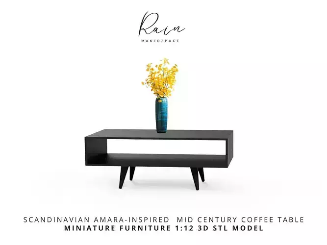 Featuring a modern minimalist Nordic design, this true-to-scale 1:12 replica of the Amara Mid Century Timber Coffee Table is perfect for adding a touch of sophistication to your miniature space. With a functional open shelf, this table is both stylish and practical. 3D print as is for 1:12 size or increase the size to your liking.