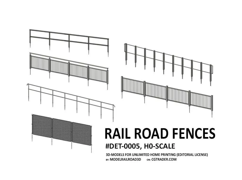 Set of steel fences commonly found around the railway lines. Ready-to-print super detailed items set for H0-scale Model Railroad. The 3D-models with supports for resin print are included and all neccesary preparations are made to simplify print. Simply download, un-zip, slice and print. Enjoy!