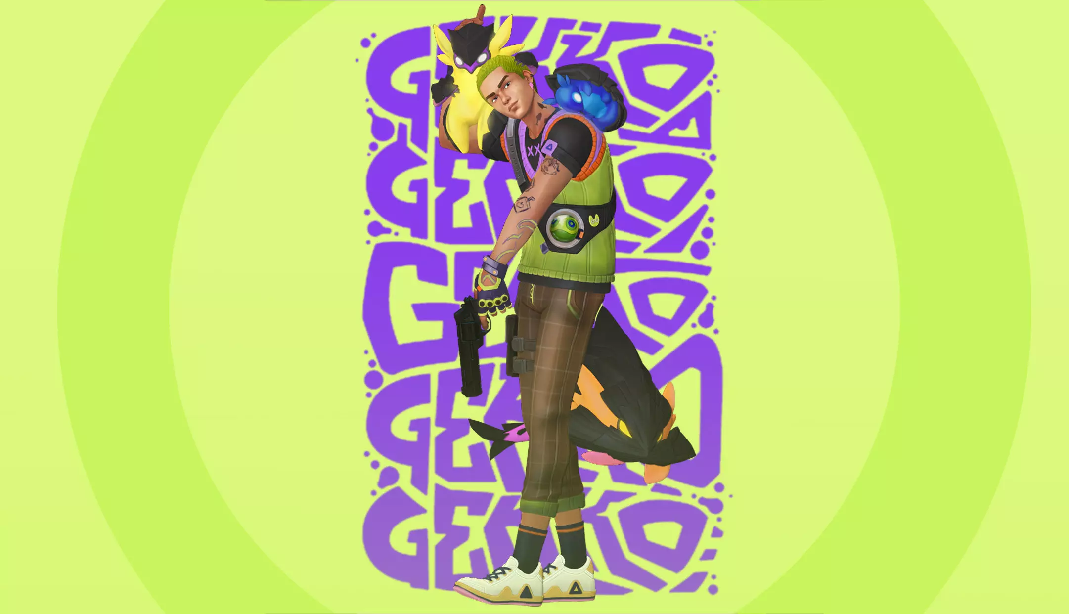 Personaje de Gekkodel videojuego Valorant en su clásica pose del juego.