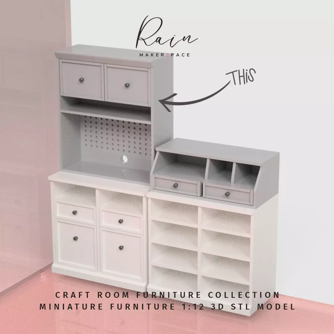 3.) Hutch: Add a touch of elegance and functionality with this versatile hutch. This hutch offers a perfect space to display or store your crafting essentials. Print or color the peg board in brown to add a touch of realism!