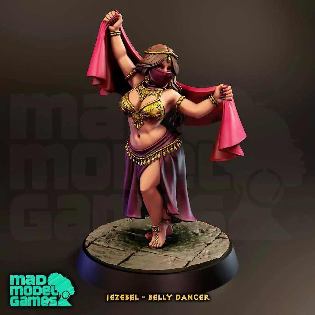 This includes the Jezebel - Belly Dancer miniature, in 28mm and 32mm scale. Perfect for a dnd main character or an NPC in a quest.