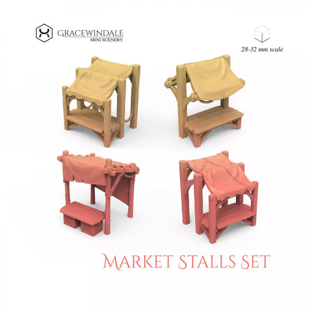 28-32 mm scale market stalls for DnD, dioramas or other tabletop games.