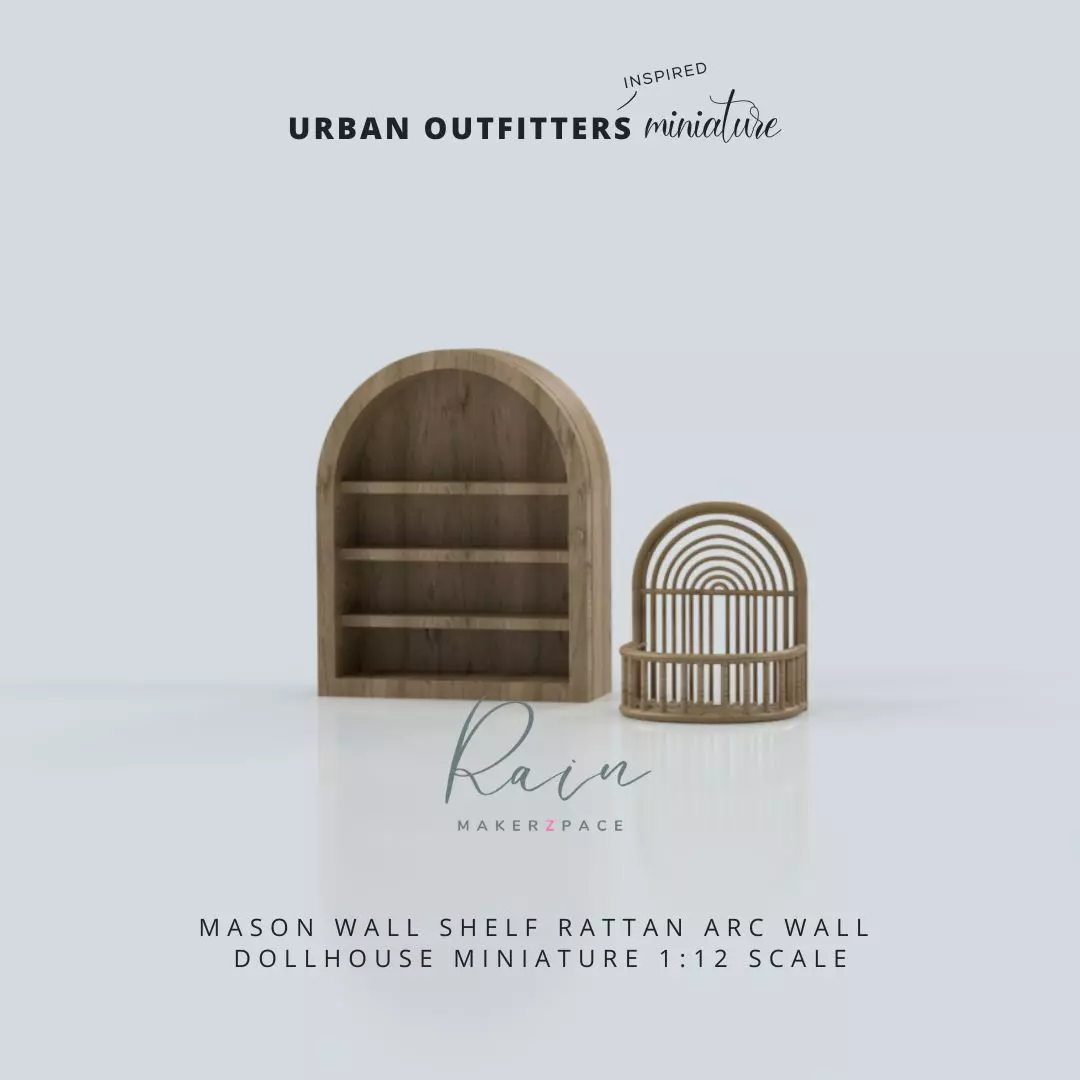 If you're searching for a chic and trendy addition to your dollhouse, look no further than this remarkable 1:12 scale miniature set of Mason Wall Shelf and Arc Wall Shelf for 3D printing! These miniature replicas of Urban Outfitters' Mason Wall Shelf and Rattan Arc Wall are perfect for adding a boho-inspired touch to any room in your dollhouse.