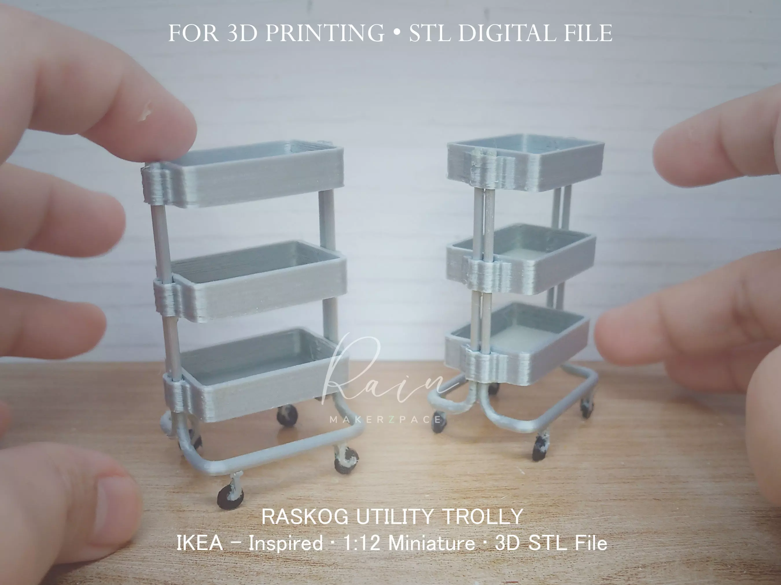 Authentically designed at a 1:12 scale for seamless integration into your miniature world.Provides the perfect storage space for miniature soap, detergents, and other laundry essentials.Elevates the realism of your dollhouse laundry room, making it feel like a functional and organized space.Ready to enhance the functionality and authenticity of your dollhouse laundry room? Download the design now and 3D print your own miniature IKEA-inspired Raskog Utility Trolley to keep your laundry room organized and lifelike.