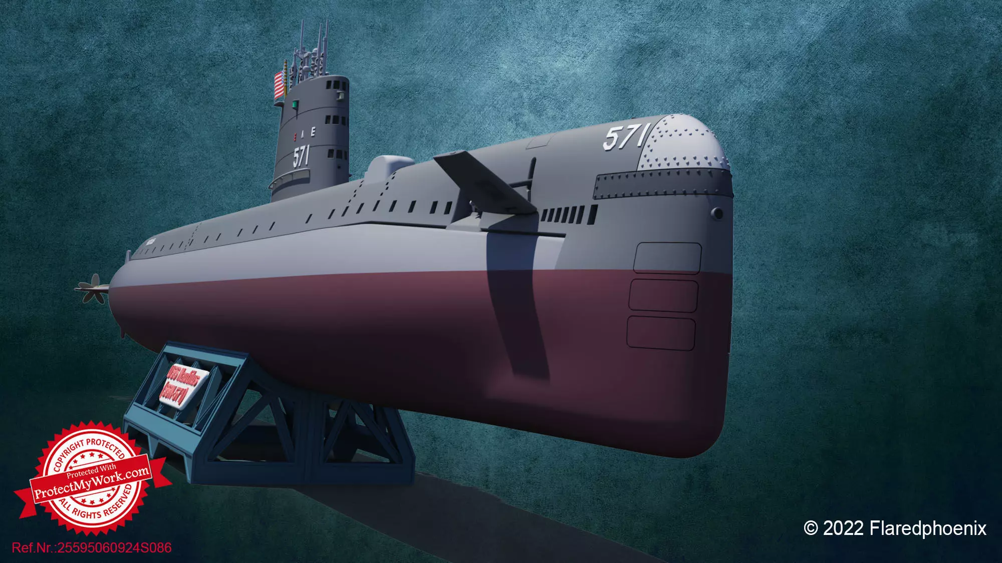 USS Nautilus SSN-571This is an American submarine and was the first nuclear powered submarine in the world.This material may not be sold, divided into groups, or published. Files are 3D watermarked www.watermark3d.comIt was drawn at a scale of 1:72.Dimensions 1:72Length = 1356mmWidth = 125mmHeight = 223mm
