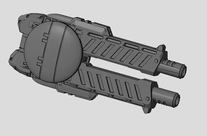 G-22 M66 DUO: The M66 line are Terran-built Armored Long-Barrel Auto-Cannons. The Mk.V's paired within this Module use 32mm High-Velocity Armor Piercing Rounds firing at a near cyclic rate. The added Armor lends itself to survivability on the outer rims and other harsh environments, and work well to protect overall at the cost of added weight. Also, Large caliber ammunition and double guns means low firing capacity, but the bins are sizable enough for regular skirmishes without resupply. Unilaterally designed to work for Central, Left or Right side fitment. This file pack comes with a single-form and FDM-optimized format STL, as well as a CHIBI-TECH SD Game Stas Card and Deckback .PNG files.